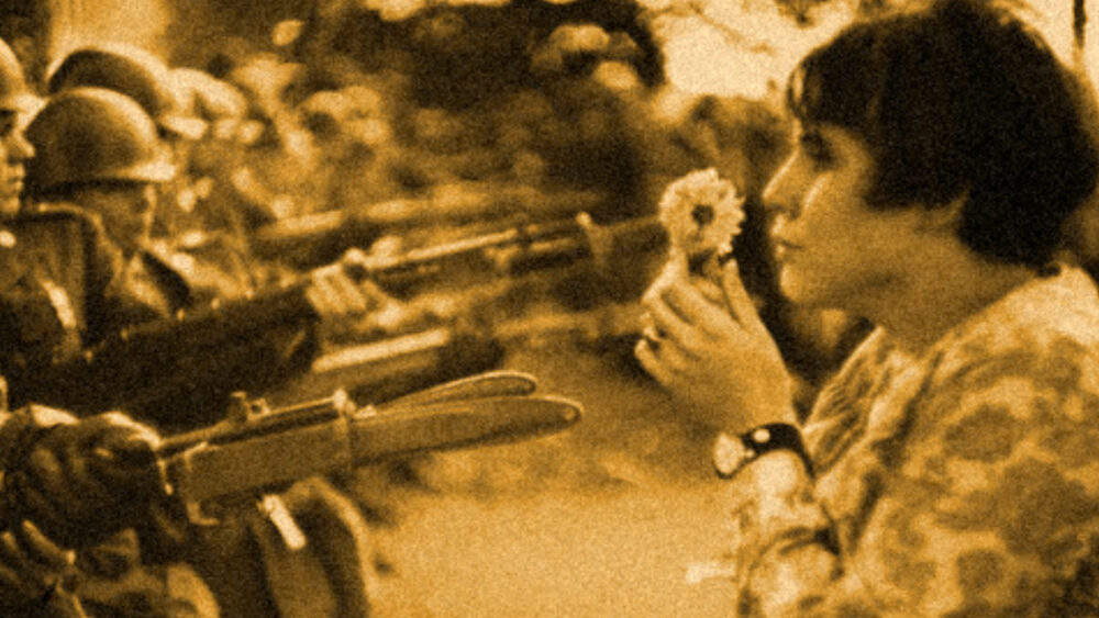 Image d’illustration d’après la photo de Marc Riboud, la fleur au fusil