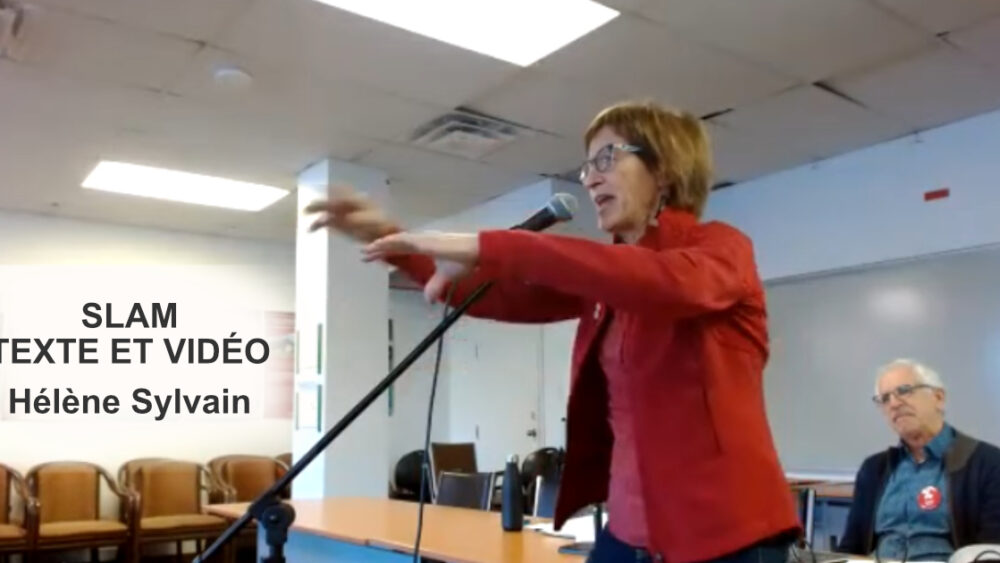 Voici le texte du slam d’Hélène Sylvain qu’elle nous a présenté en ouverture de notre Assemblée Générale Annuelle. Pour l’écouter cliquez sur le lien suivant :