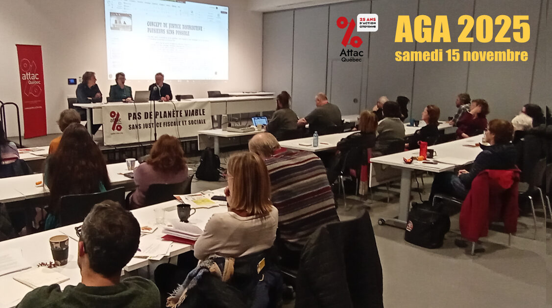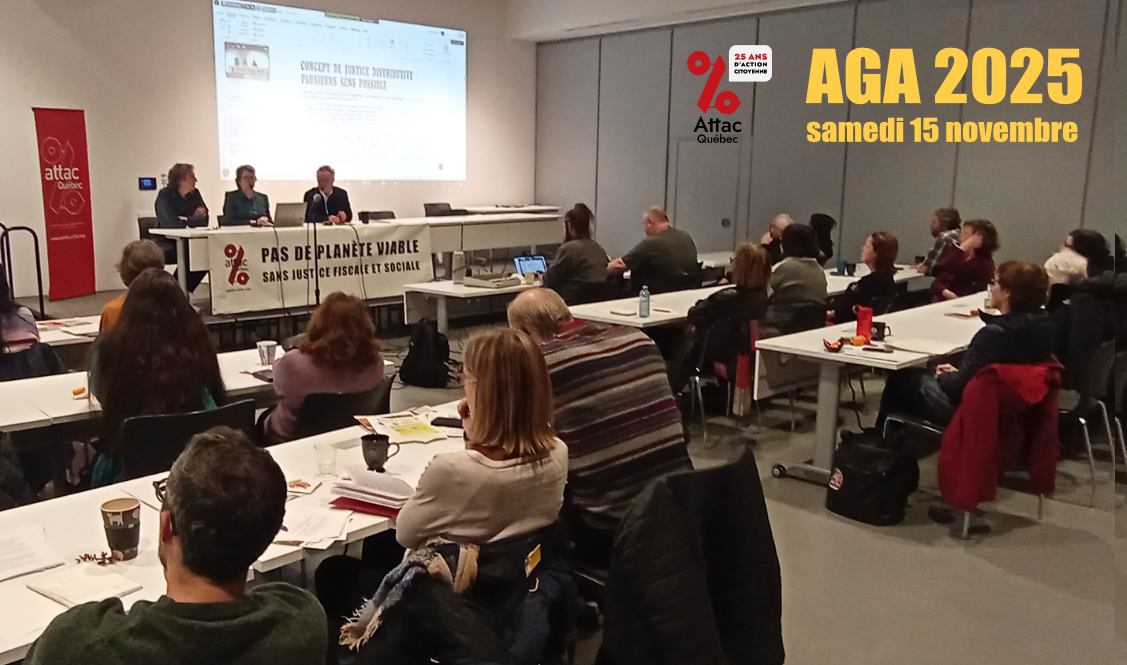 On vous attend samedi le 15 novembre pour l’Assemblée générale annuelle d’Attac Québec!