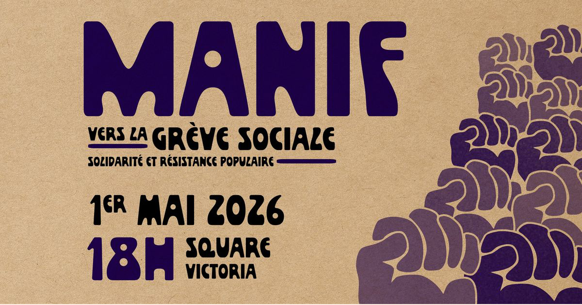 Cette année, retrouvons-nous le 1er mai prochain afin de démontrer notre soutien pour un Québec juste, lumineux et altruiste. Face à la montée de la droite dans l’espace public, en dépit des lois qui détricotent expressément les contre-pouvoirs sociaux et environnementaux, et malgré la militarisation à outrance, reprenons la rue.