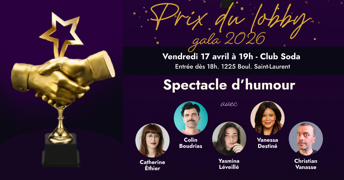 Plus de 100 billets ont déjà été vendus pour le gala du prix du lobby de l’année qui aura lieu dans moins d’un mois au Club Soda!
